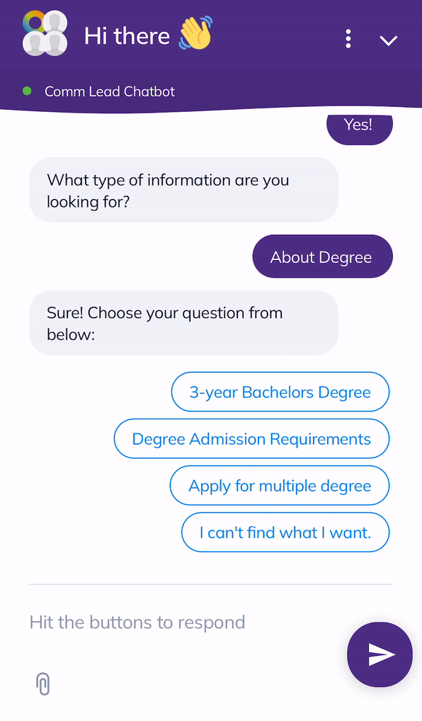 The information that prospective students need as they apply for the graduate program is spread out across multiple Comm Lead and UW websites, making it difficult to locate the answer to any specific question. A chatbot embedded in the Comm Lead website would help answer primary questions and/or direct prospective students to the information they need. If they need additional help, the chatbot would also assist them in contacting the program.