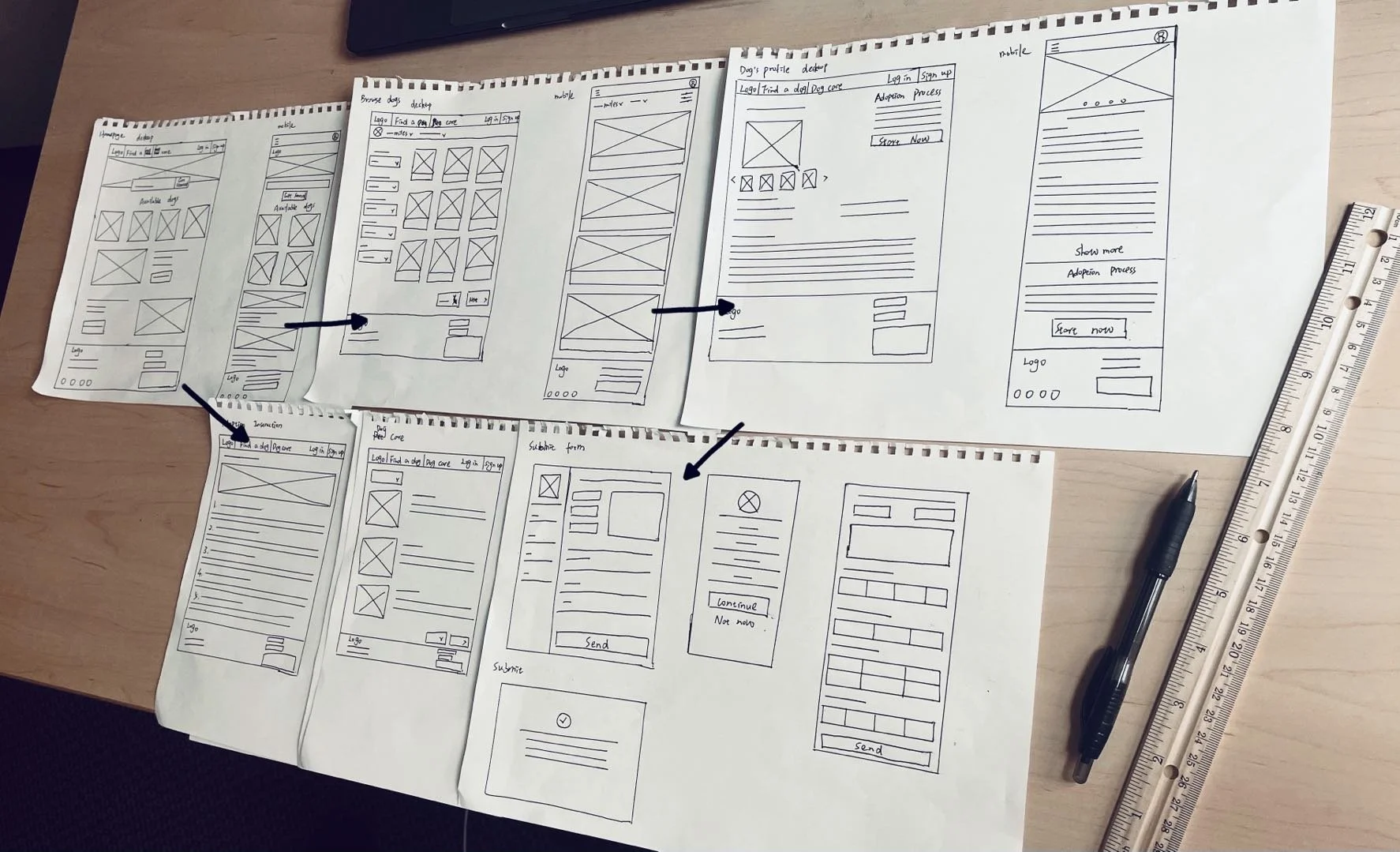To create a low-fidelity prototype, I connected all of the screens involved in the primary user flow of browsing and finding a dog, as well as submitting adopting application.